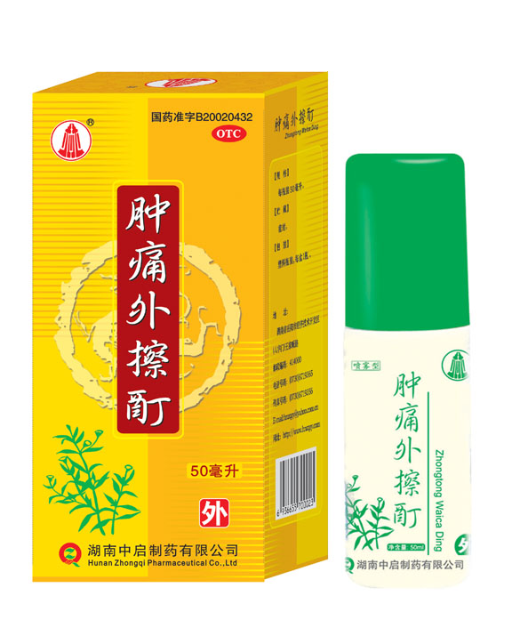腫痛外擦酊主要是由墨旱蓮、大黃、冰片、樟腦等純天然藥物經(jīng)過科學的方法制作而成。 方中君藥大黃味苦性寒,功能瀉熱毒,破積滯,行淤血,常以外用。臣藥墨旱蓮味甘酸性涼,功具“涼血養(yǎng)陰,退火消腫”(《分類草藥性》、《本草經(jīng)疏》)。佐藥冰片,辛苦性涼,功擅通壅塞,散郁火,消腫止痛,并以其辛香走竄之氣,助君臣二藥通透肌膚,直達病所而迅速發(fā)揮作用;樟腦味辛性熱,方中用量少,以其味辛,能助冰片之透達,以其性熱并可協(xié)調諸藥,防前藥之過于寒涼而凝滯氣血為使藥。全方組合具有清熱解毒,活血和營、消腫止痛之功效。本方擇藥精當,以酊劑外用,使藥力直達藥所,見效快,使用方便。
